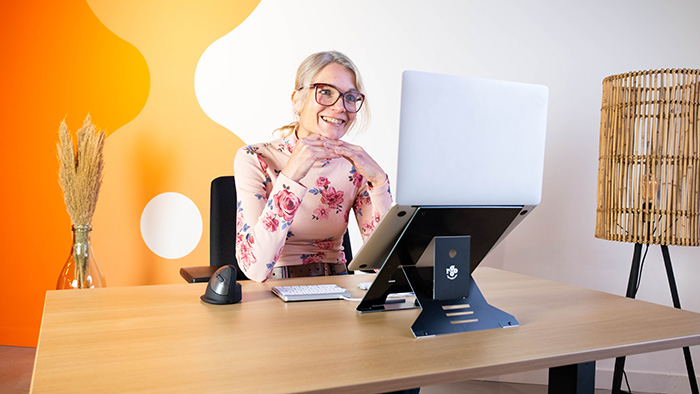 The R-Go Riser Document laptop stand easily raises any laptop screen to eye level. This puts your head in a natural position and reduces tension in your neck and shoulder muscles. If you work with paper, you can easily place it on the document holder. This way, you always maintain an upright posture. This laptop riser is easily height-adjustable in 5 positions. The R-Go Riser is made of aluminium and has a sleek design. The Riser is ultra thin and lightweight: ideal to take with you in your bag!